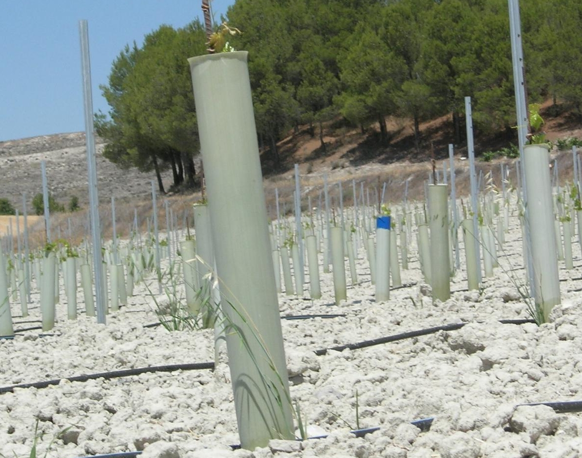 Tubo translúcido de protección utilizados en viticultura para resguardar las cepas jóvenes durante sus primeras fases de desarrollo. Actúa como barrera física contra los daños causados por roedores y la acción mecánica del viento, factores que pueden comprometer el crecimiento y la viabilidad de la planta. Además de su función defensiva, facilita la aplicación controlada de herbicidas al crear un microambiente que limita la dispersión del producto químico a plantas adyacentes.